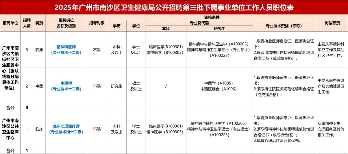 2.2025年广州市南沙区卫生健康局公开招聘第三批下属事业单位工作人员职位表