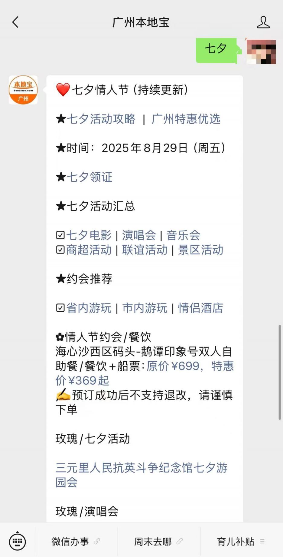 温馨提示:微信搜索公众号【广州本地宝】,关注后在对话框回复【七夕】获2025年广州七夕联谊活动、演唱会/音乐会、商城活动等,以及活动时间、地点、攻略、游玩指南等。